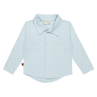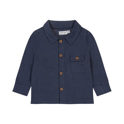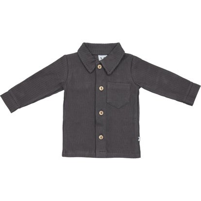 Donkergrijze rib blouse. Leuk met de beige romper met dennenappels en de donkergrijze rib broek in dezelfde stof.