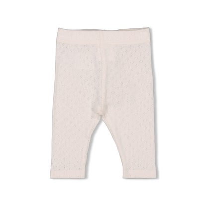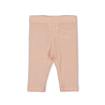Roze legging met een strikje op de tailleband. Onderaan heeft de legging een hartje in de kleur antraciet.