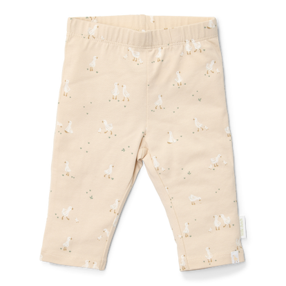 Offwhite broek met een print van bladeren, vogeltjes en eikeltjes. Een echte herfst print!