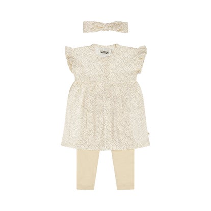 Dit is een set met een offwhite legging en een haarband in dezelfde stof.