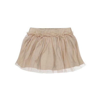 Creme rok. De rok is voorzien van tule met een goudkleurig draadje met kleine pailletten erdoorheen.