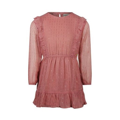 Oudroze jurk met een mooi glimmertje in de stoof en ruches.