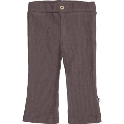 Donkergrijze rib broek. Leuk met de beige romper met dennenappels en de donkergrijze rib blouse in dezelfde stof.