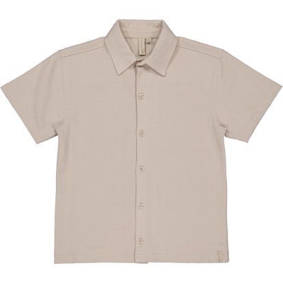 Beige overhemd met een fijn streepje in de stof.