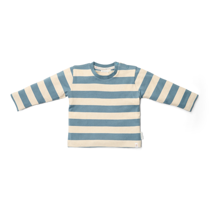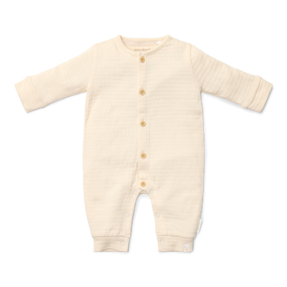 Jim, het jongetje, draagt een schattig tuinpakje.