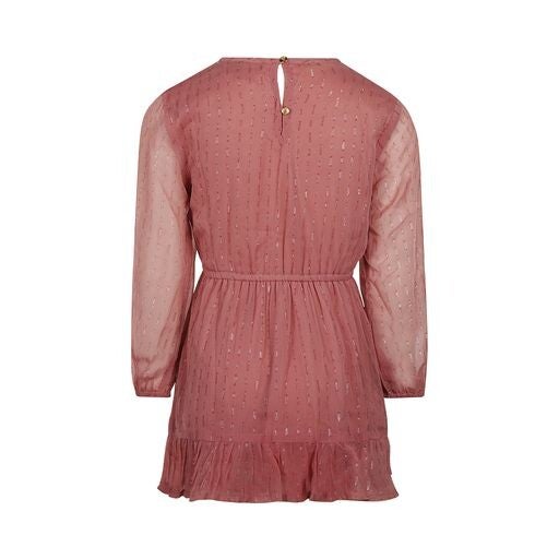Oudroze jurk met een mooi glimmertje in de stoof en ruches.