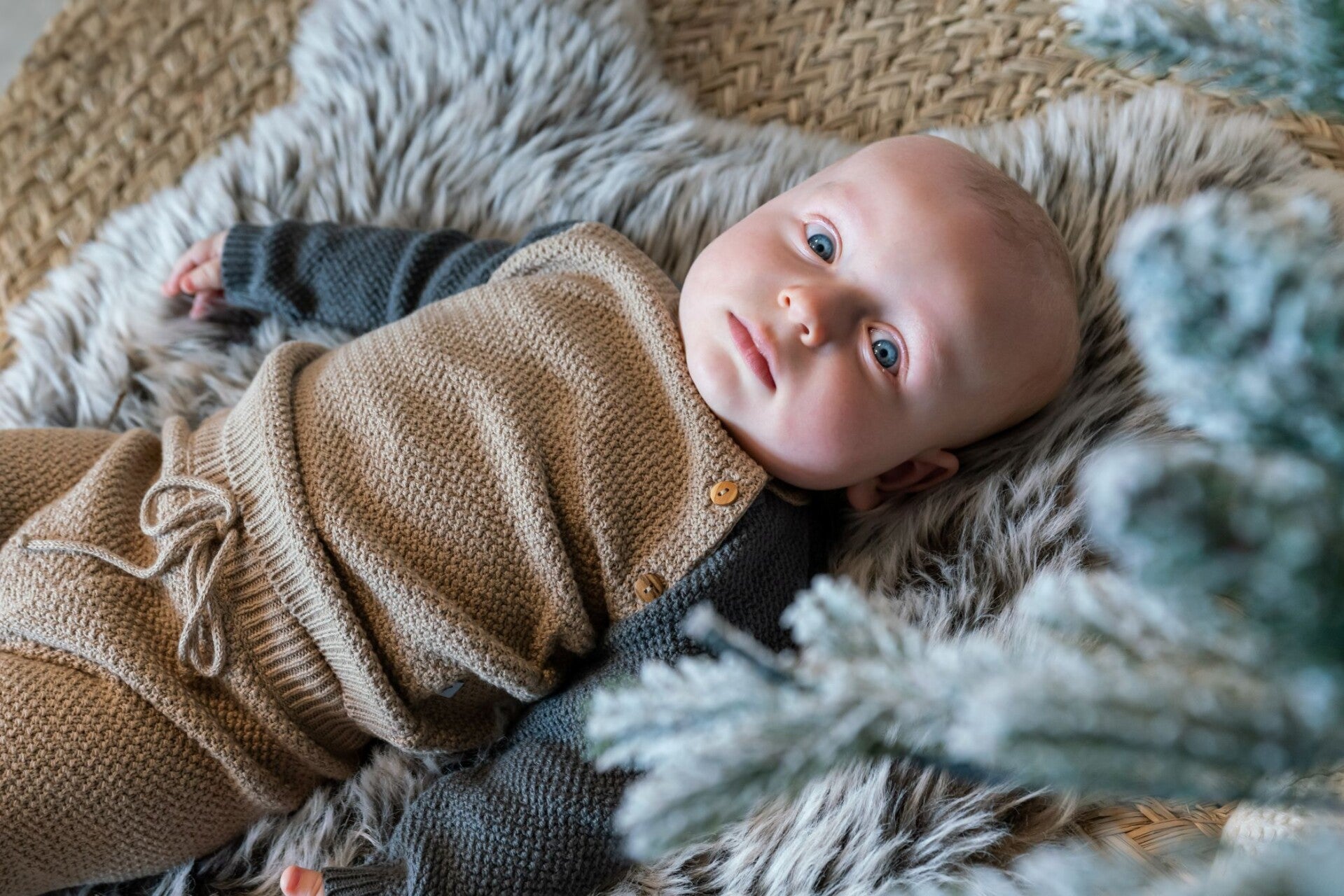 Gebreide beige broek. Leuk met de gebreide sweater met donkergrijze mouwen.