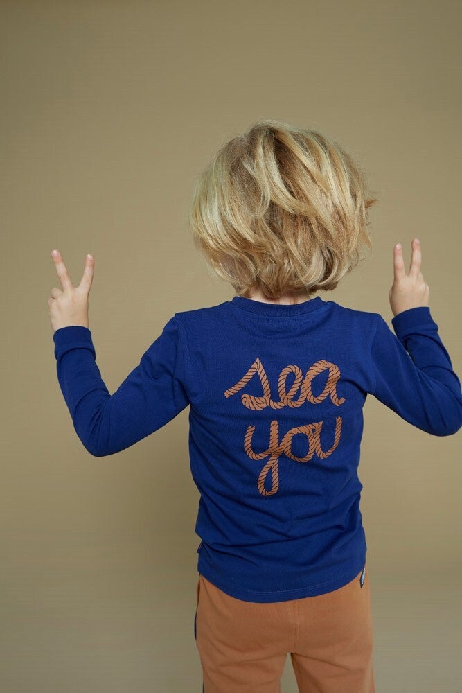 Longsleeve in een mooie kobalt blauwe kleur. Op de achterkant staat Sea You in letters van touw.