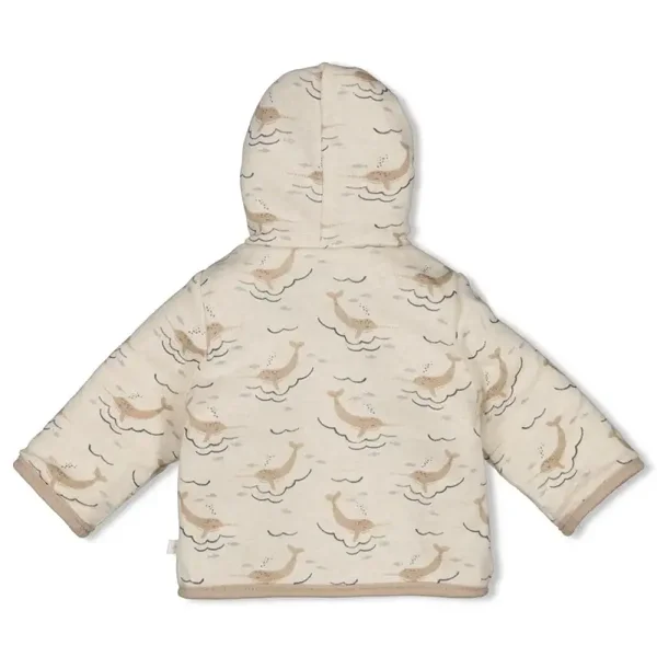 Jasje dat je aan 2 kanten kunt dragen. De offwhite bouclé kant of de print met narwallen.