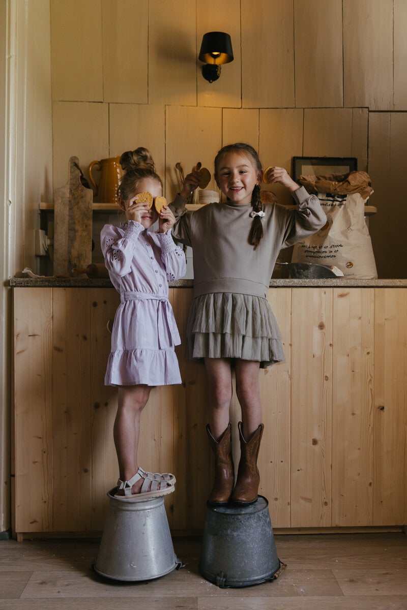 Sweater dress in een warme taupe kleur. De rok is van tule.