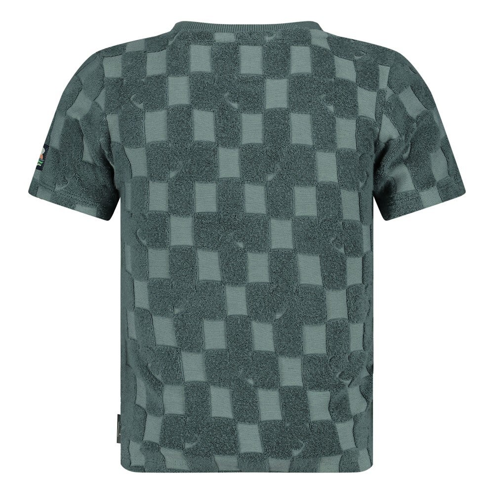 Geruit t-shirt met badstof in een mooie petrol kleur.