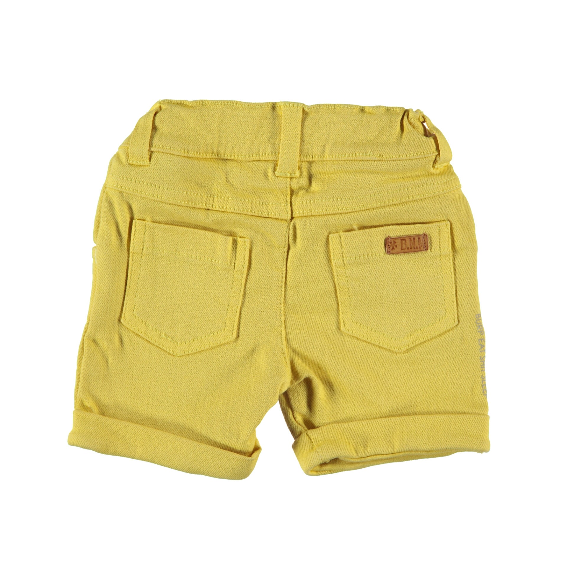 Gele denim short met verstelbaar elastiek in de taille. Leuke zomerse kleur!