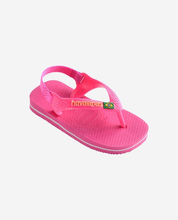 Een absolute zomer must-have van het Braziliaanse merk Havaianas; dat is deze zomerse HAV. BABY BRASIL LOGO II slipper. Dit vrolijke exemplaar heeft roze bandjes met de merknaam in reliëf, een roze voetbed en zool en handig bandje achter de hiel. De slipper is comfortabel, duurzaam, lichtgewicht, anti-slip, hittebestendig én waterresistant. Wat wil je nog meer? Dat de zon schijnt en jouw kind ze de hele dag kan dragen natuurlijk!