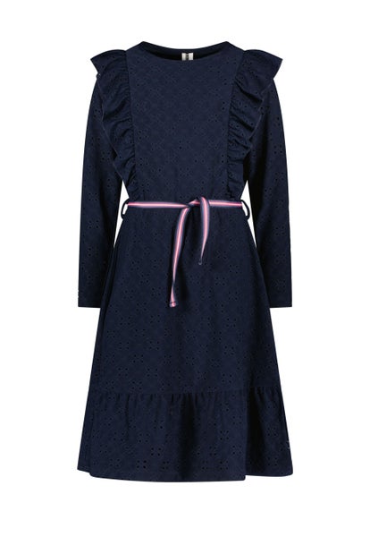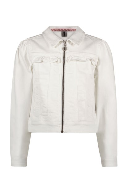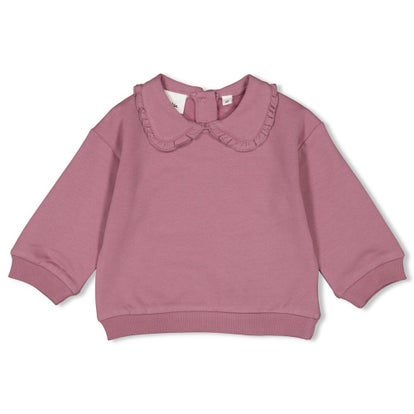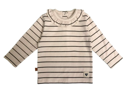 met een kraagje en een lief randje bij de hals en uiteinden van de mouwen.