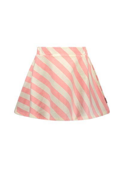 Oudroze t-shirt met op de voorkant een hart met 'Happy girls are the prettiest' erin. Dit is een set met een gestreepte short.