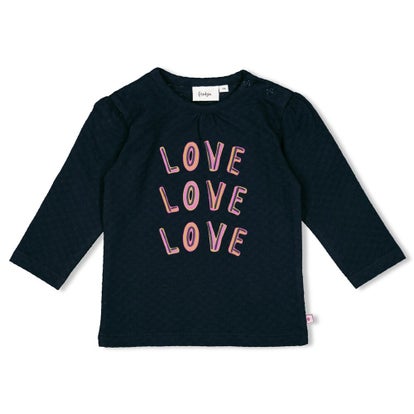 Donkerblauw shirt met op de voorkant een groen kopje van een beer!